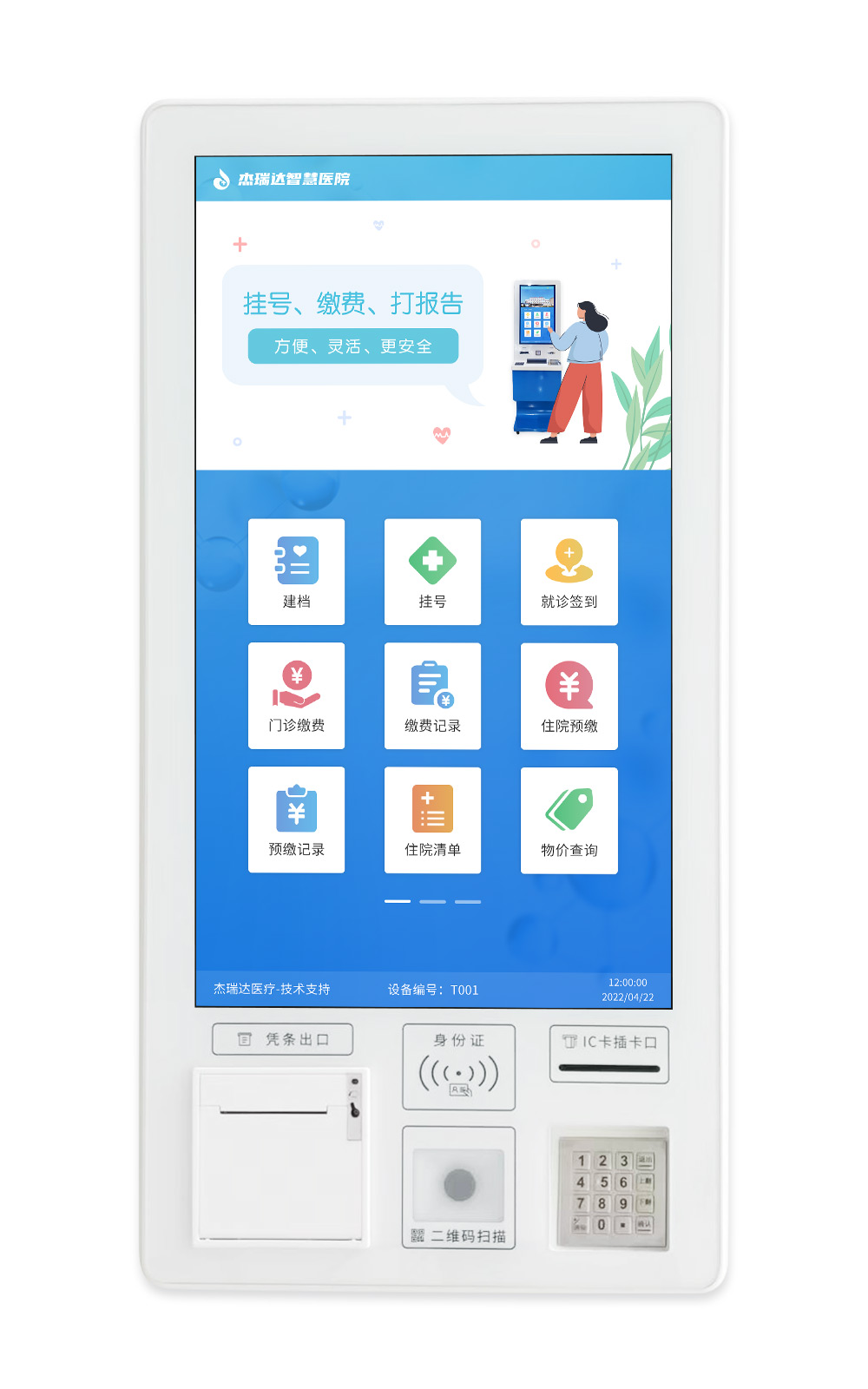 成都杰瑞達科技有限公司成立于2009年,坐落于四川成都市武侯區聯邦財富中心,是一家專注于醫院智慧門診就醫服務系統軟硬件研發、生產、銷售于一體的高新技術企業,主要系統有掌上醫院系統、自助終端就診系統、門診排隊叫號系統、導航導診系統、信息發布系統、排班系統等軟硬件系統;產品廣泛應用于云、貴、川、渝、甘、陜等地區、截止2021年擁有醫療信息化相關計算機軟件著作權42件、專利技術12件、專業機構檢測報告26件;相關產品通過CCC、FCC認證。且擁有業內優秀的專業技術人才和質量管理人員,部分技術榮獲成都市科技局頒發的科技進步一等獎;屬于"雙創板"掛牌企業,證券代碼:811283。 杰瑞達醫療深入醫療行業核心場景,專注于醫院信息化、智能化建設,以“建設智慧醫院,守護大眾健康”為使命,秉承以誠信為本,求實創新,厚德載業,服務社會的經營理念;利用云計算、互聯網、AI、大數據、物聯網等新興技術研發 HMIS(健康管理系統)平臺,為患者提供就診及健康管理的全流程優質服務,以人為本,精準定位,不斷推陳出新,為醫院提供智慧醫院最優解決方案,持續為用戶和伙伴創造價值,為社會、為人民服務!