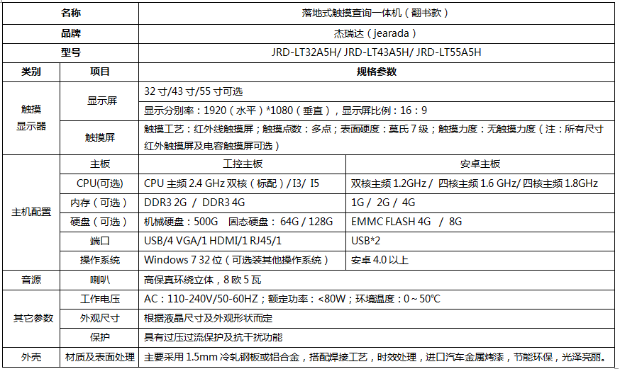 1、用高質(zhì)量紅外/電容觸摸面板,超高透光率,抗暴能力強,耐刮耐磨;
