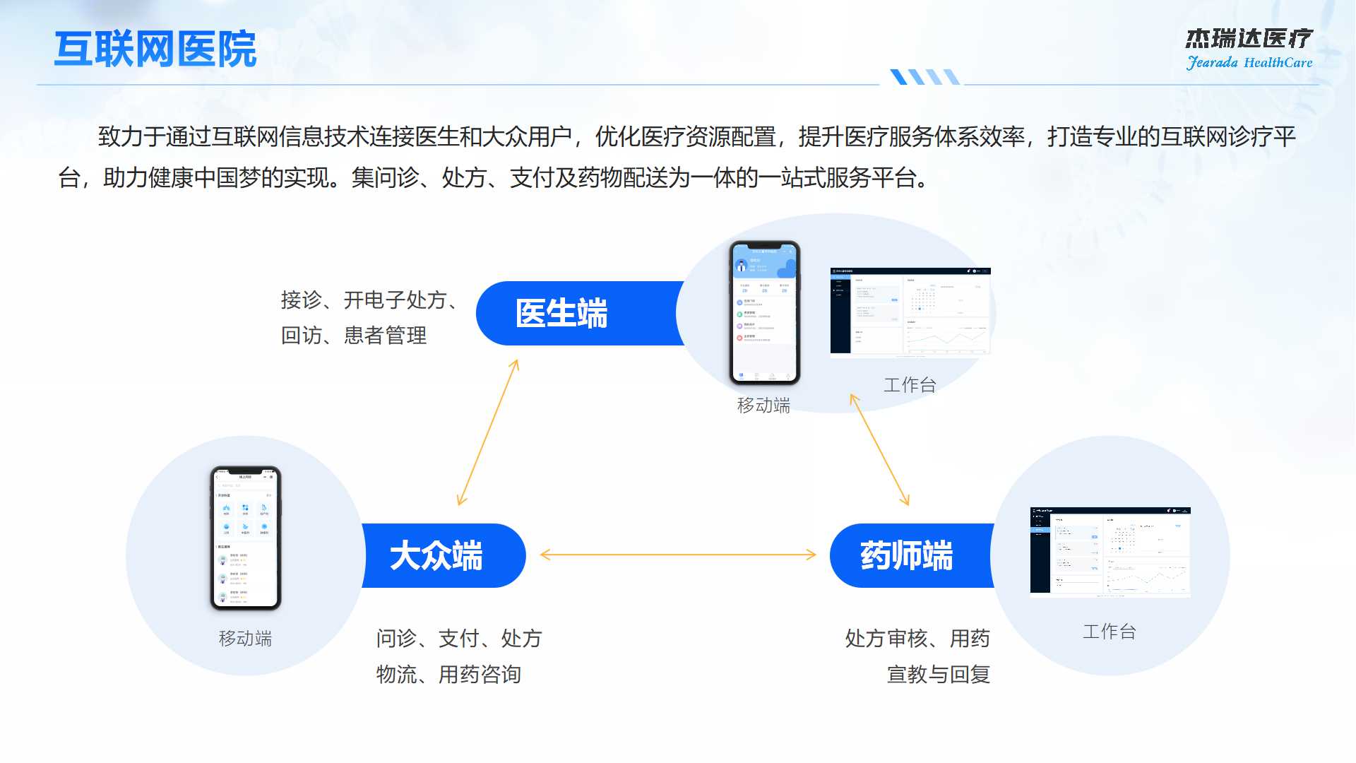 互聯(lián)網(wǎng)醫(yī)院系統(tǒng)通過互聯(lián)網(wǎng)信息技術(shù)連接醫(yī)生和大眾用戶,優(yōu)化醫(yī)療資源配置,提升醫(yī)療服務(wù)體系效率,打造專業(yè)的互聯(lián)網(wǎng)診療平臺(tái),助力健康中國(guó)夢(mèng)的實(shí)現(xiàn)。集問診、處方、支付及藥物配送為一體的一站式服務(wù)平臺(tái)。
